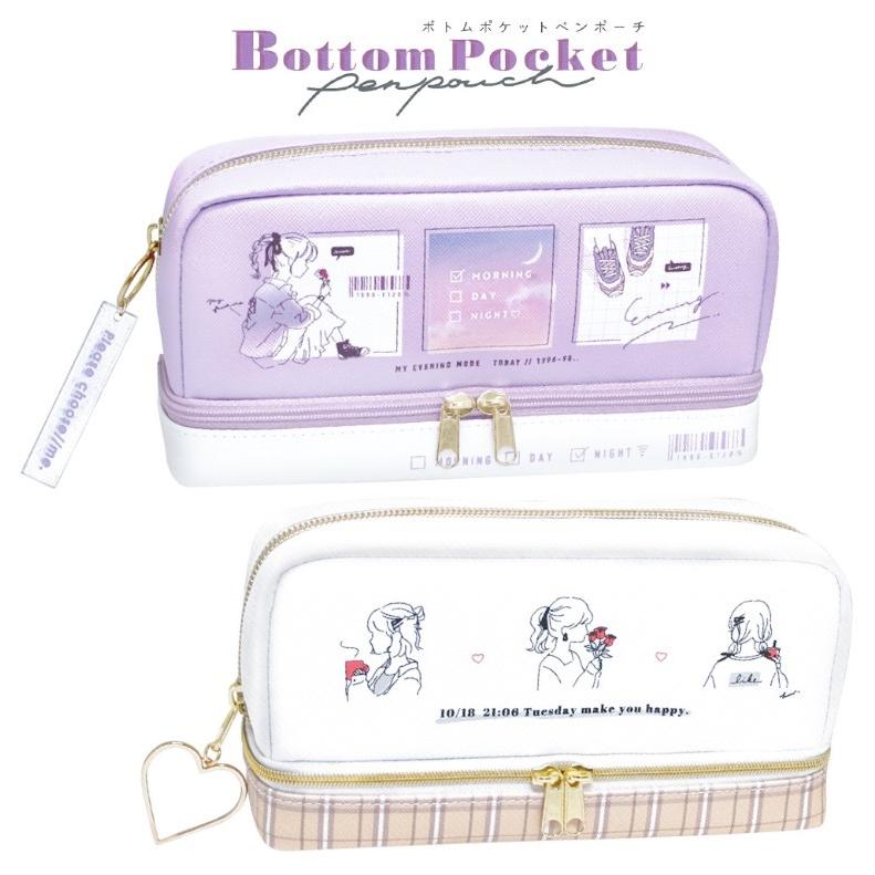 筆箱 小学校 女子 ペンケース ファスナー ボトムポケット 女の子 大容量 文房具 文具 ペンポーチ おしゃれ 中学生 日本限定 かわいい ラテカラー